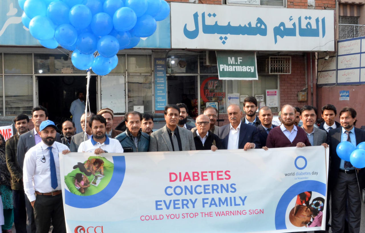 On the occasion of World Diabetes Day, Al-Qaim Hospital proudly hosted an awareness walk led by esteemed healthcare professionals, including Dr. Naveed Ahsan (Director Health), Dr. Farhat Abbas, Dr. Shaukat Qureshi, Dr. Tariq Masood, Dr. Azhar Mahmood, Dr. Nawaz Kawish, Dr. Nizam, Dr. Munawar Ahmed, and many other participants. This impactful event aimed to raise awareness about diabetes and its far-reaching effects on families.